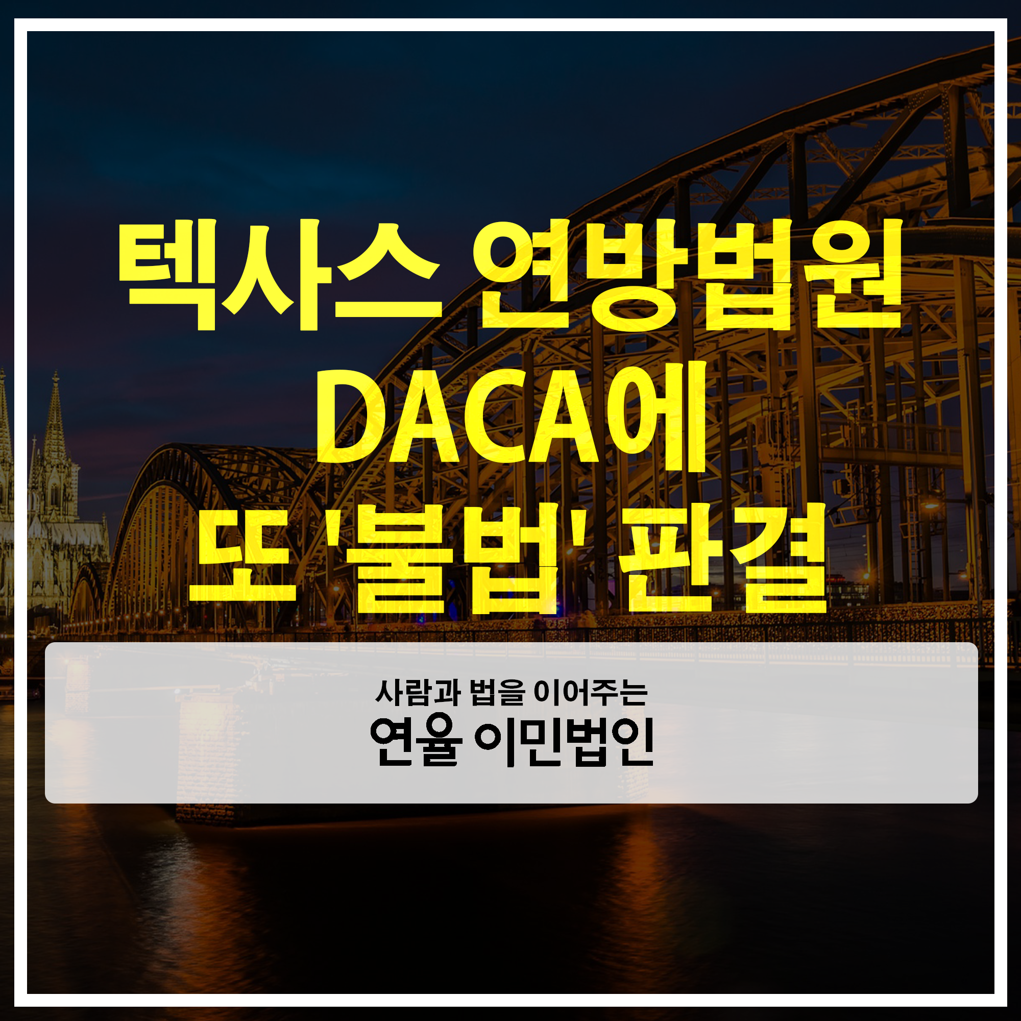 녕하세요, 연율이민법인입니다. 텍사스 연방법원 DACA에 또 ‘불법’ 판결되었다고 합니다. 다음은 관련기사입니다.